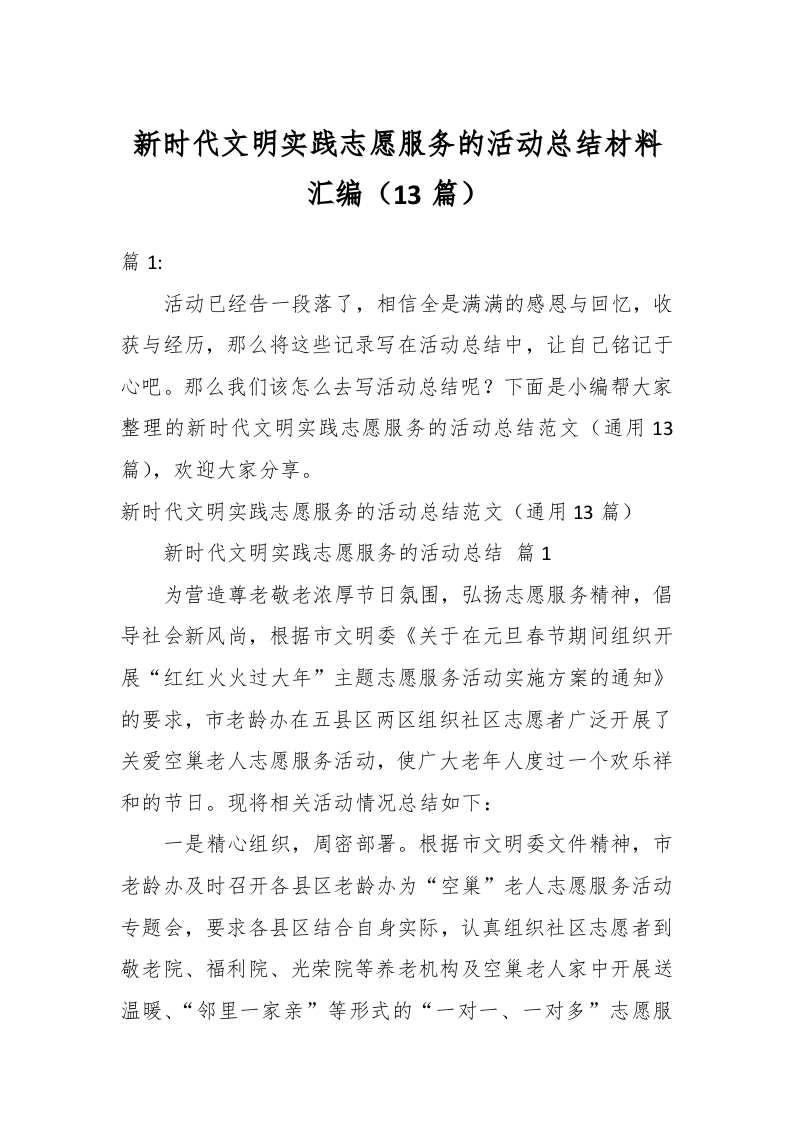 / (13篇)新时代文明实践志愿服务的活动总结材料汇编