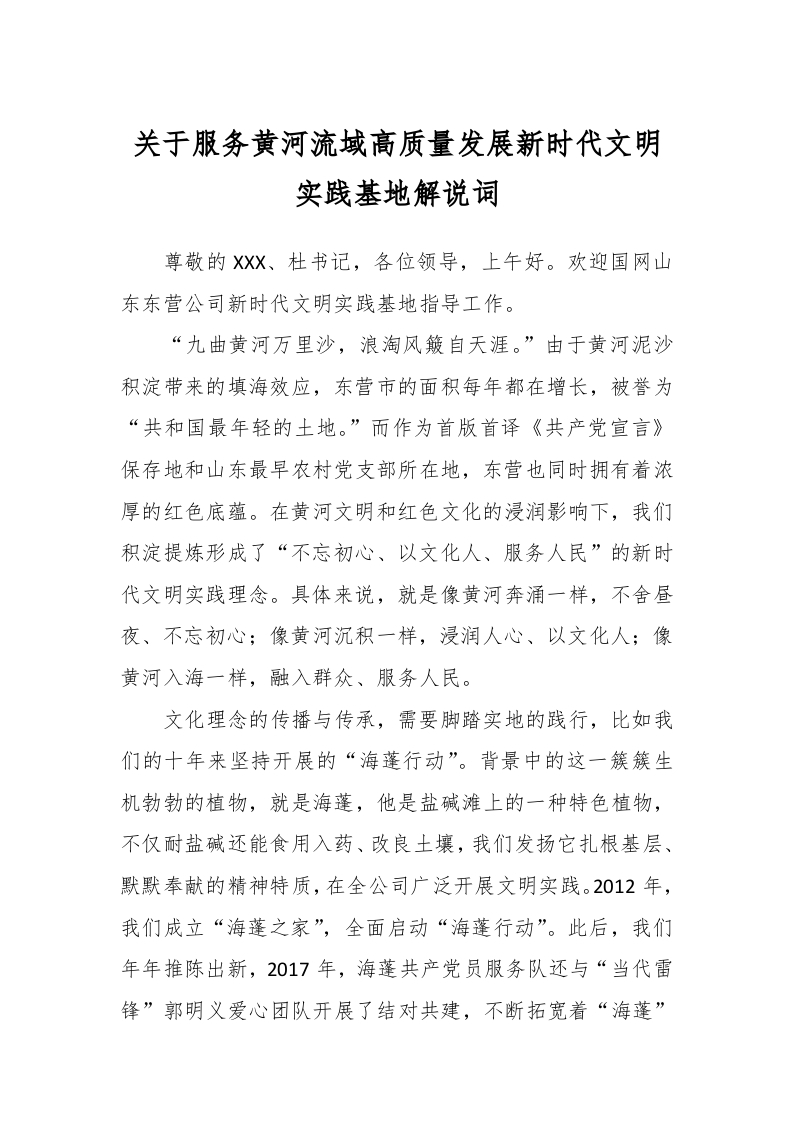 / 关于服务黄河流域高质量发展新时代文明实践基地解说词