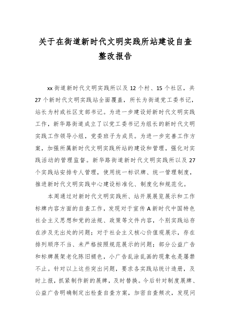/ 关于在街道新时代文明实践所站建设自查整改报告