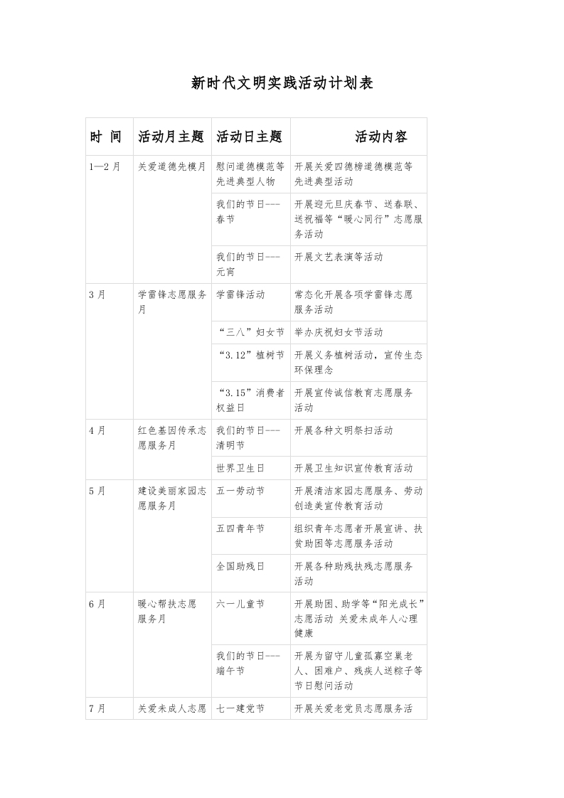 新时代文明实践活动计划表