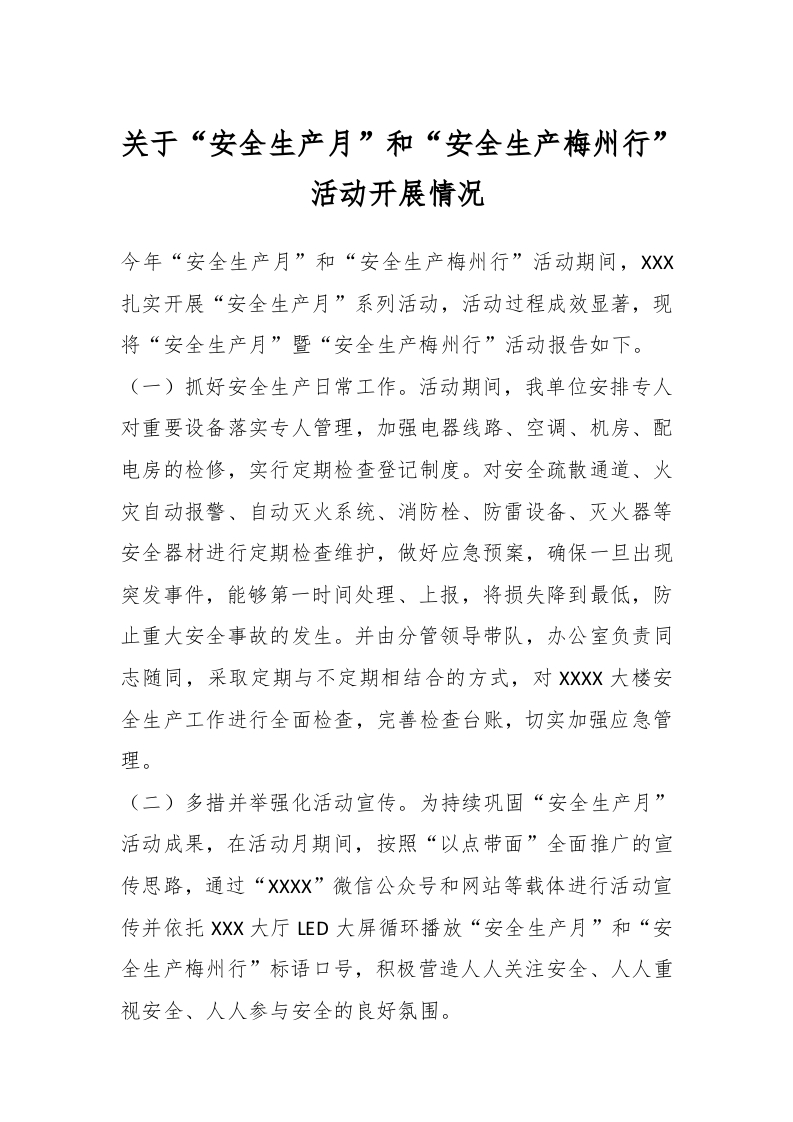 / 关于“安全生产月”和“安全生产梅州行”活动开展情况