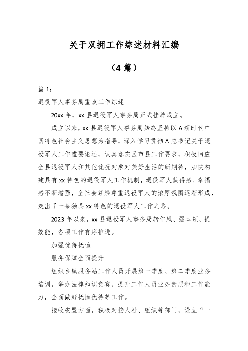 / (4篇)关于双拥工作综述材料汇编