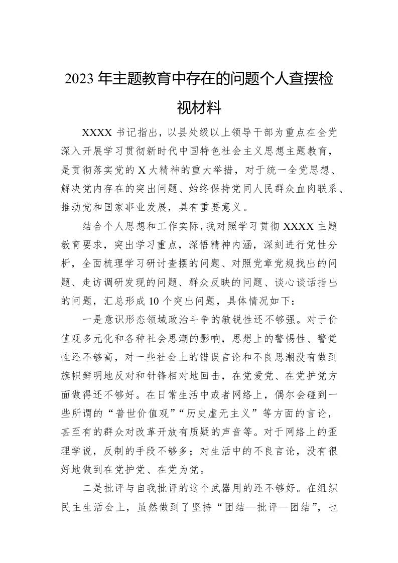 关于2023年主题教育中存在的问题个人查摆检视材料