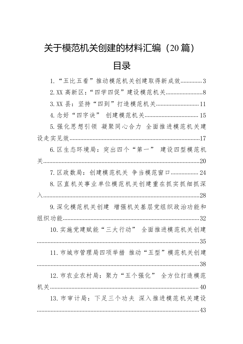 / 关于模范机关创建的材料汇编(20篇)