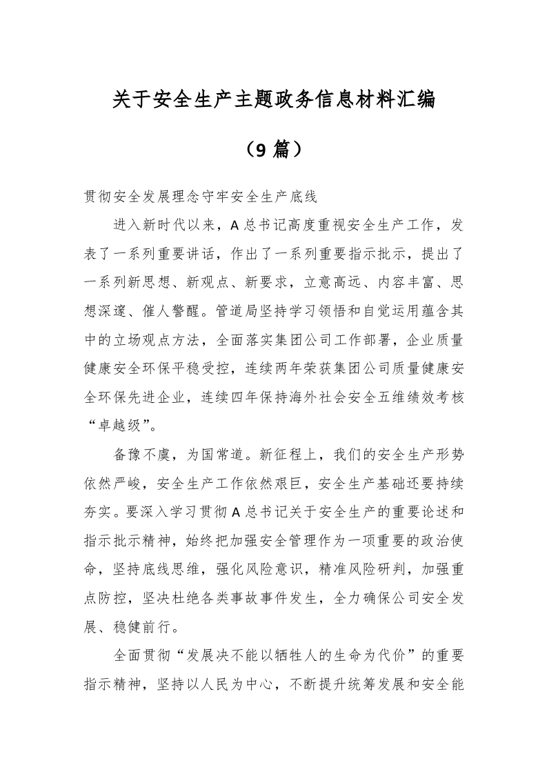 / (9篇)关于安全生产主题政务信息材料汇编