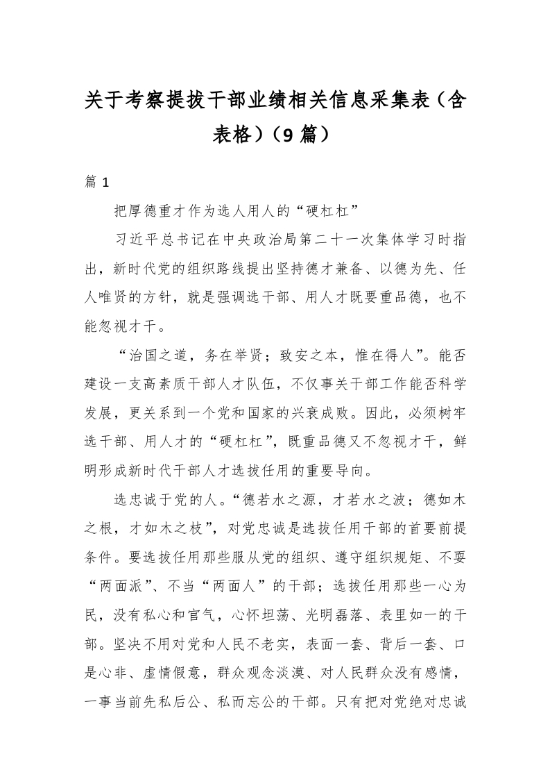 / (9篇)关于考察提拔干部业绩相关信息采集表(含表格)