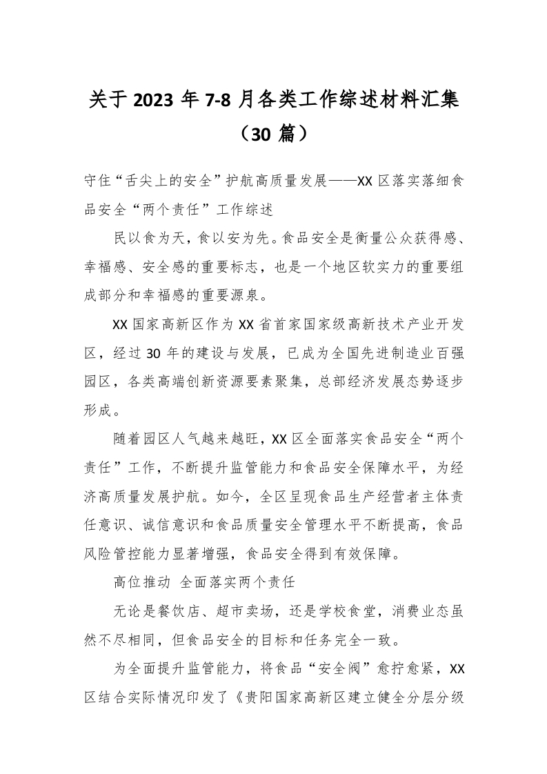 / (30篇)关于2023年7-8月各类工作综述材料汇集