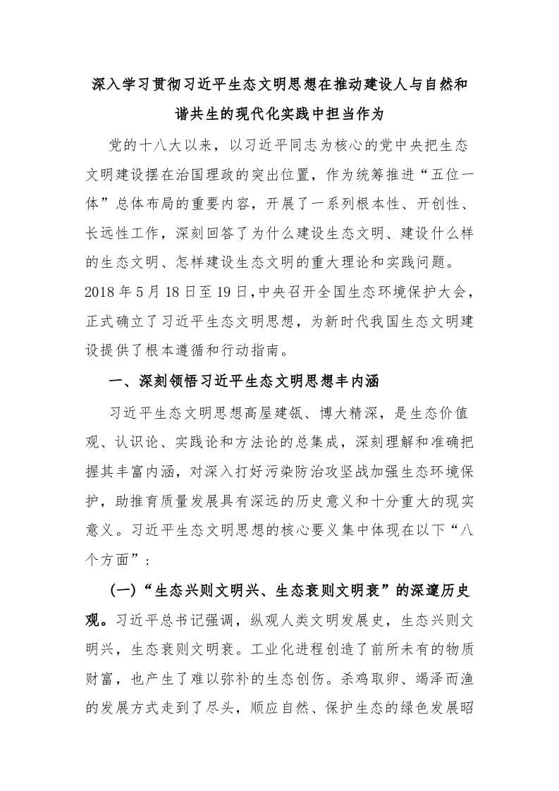 / 深入学习贯彻习近平生态文明思想在推动建设人与自然和谐共生的现代化实践中担当作为