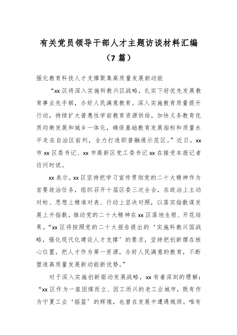 / (8篇)有关党员领导干部人才主题访谈材料汇编