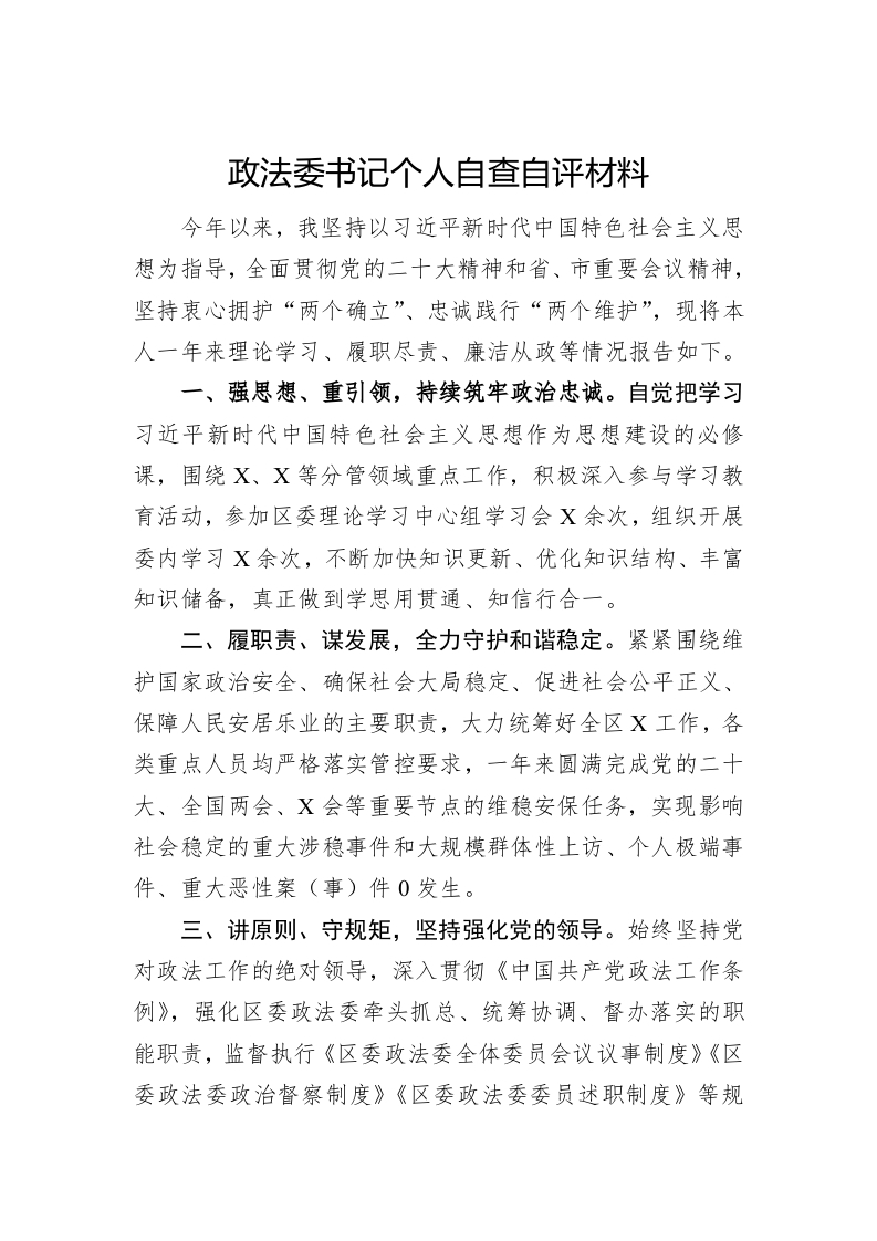 / 政法委书记个人自查自评材料
