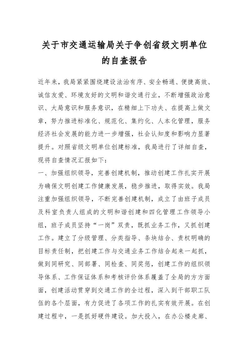/ 关于市交通运输局关于争创省级文明单位的自查报告