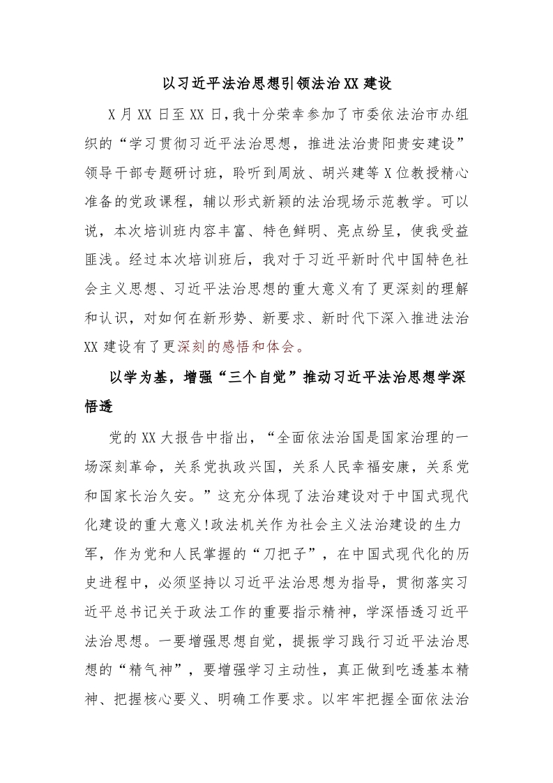 以习近平法治思想引领法治XX建设