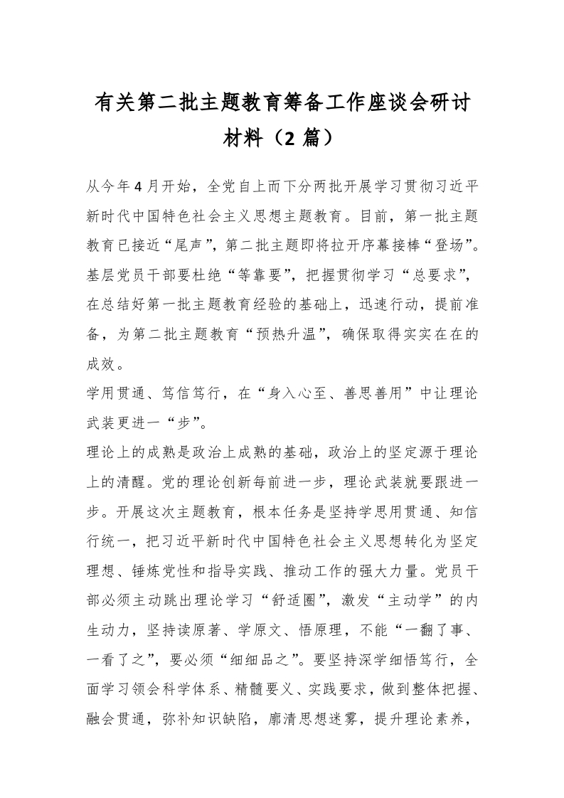 / (2篇)有关第二批主题教育筹备工作座谈会研讨材料