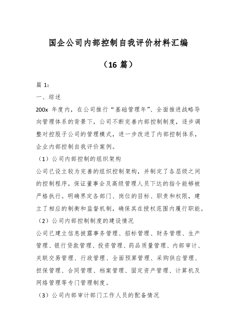 / (16篇)国企公司内部控制自我评价材料汇编