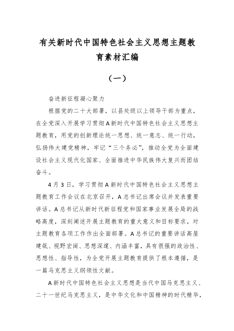 / 有关新时代中国特色社会主义思想主题教育素材汇编(一)