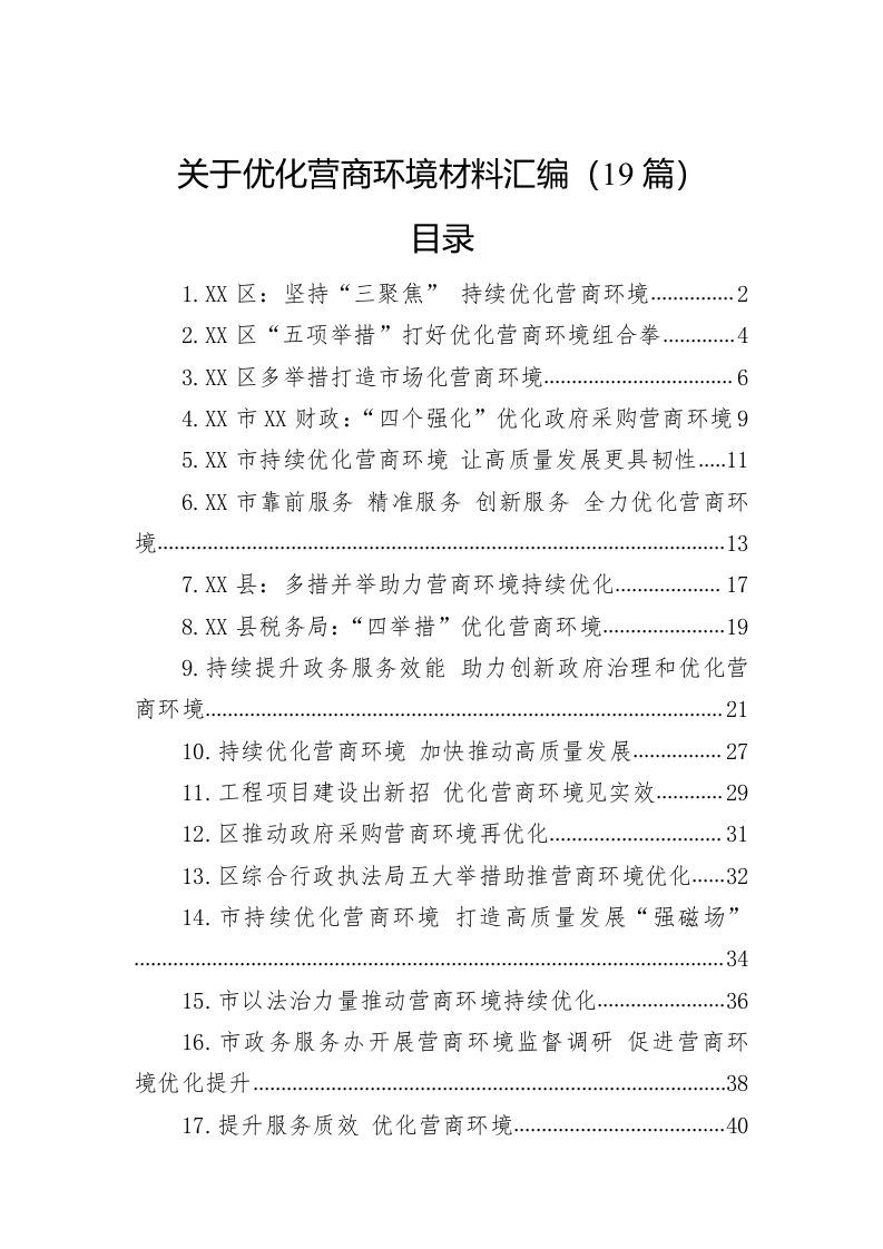 / 关于优化营商环境材料汇编(19篇)