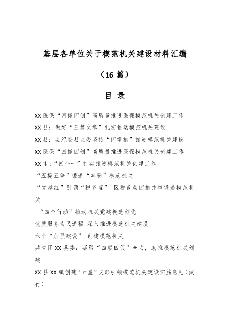 / (16篇)最新基层各单位关于模范机关建设材料汇编