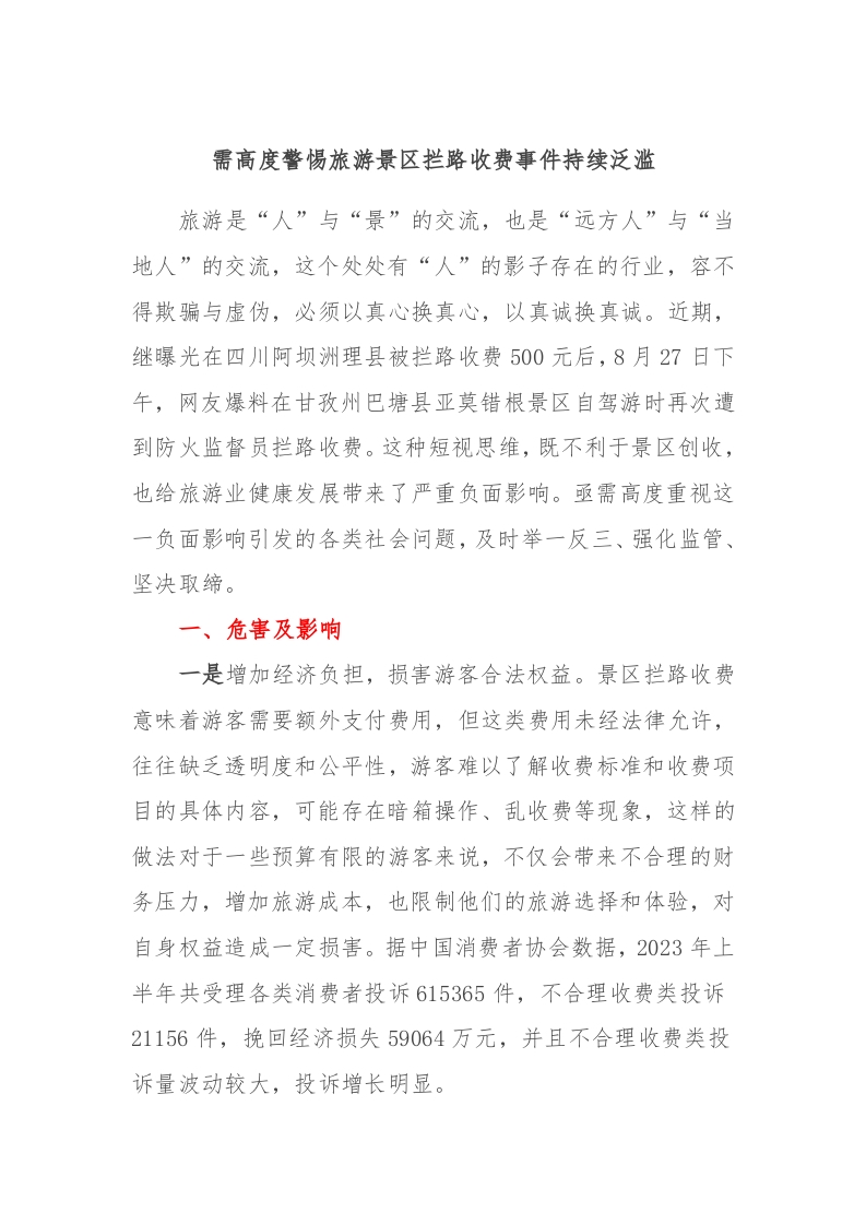 / 需高度警惕旅游景区拦路收费事件持续泛滥