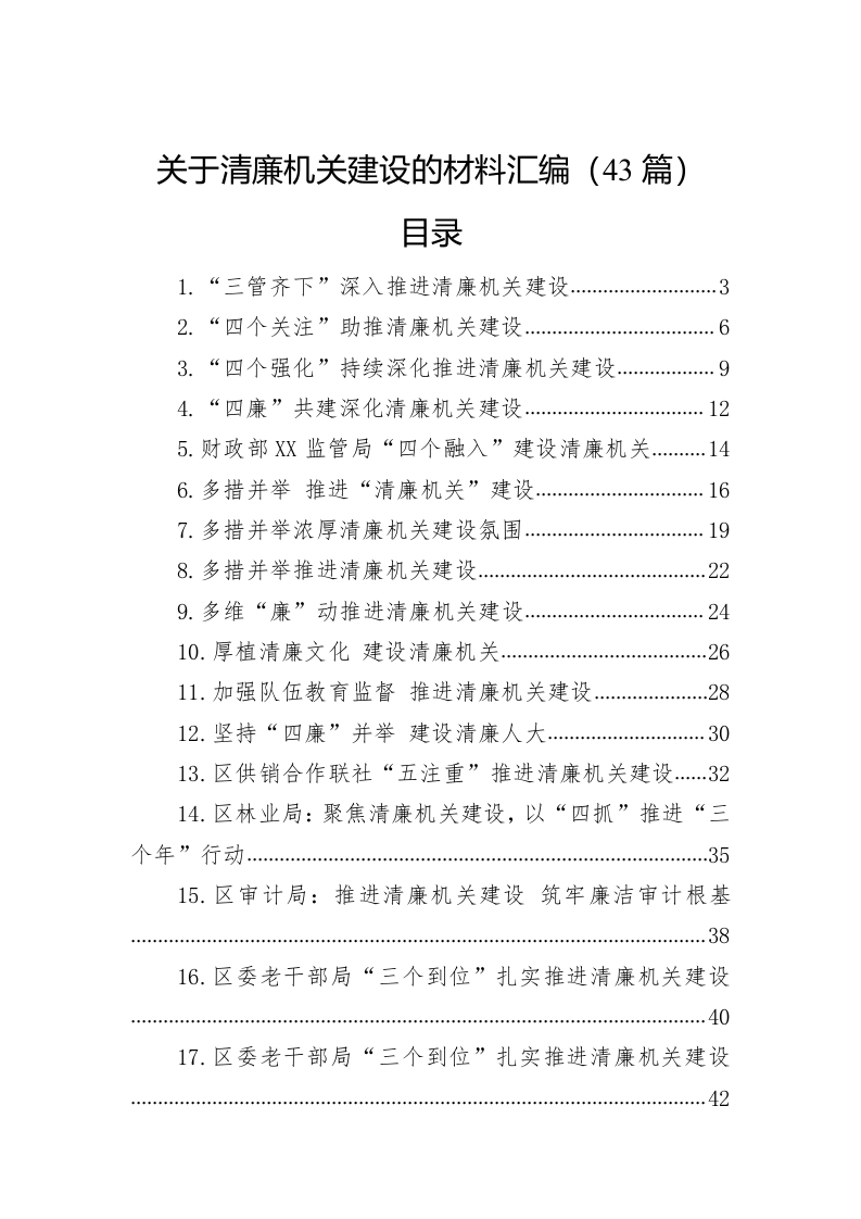 / 关于清廉机关建设的材料汇编(43篇)