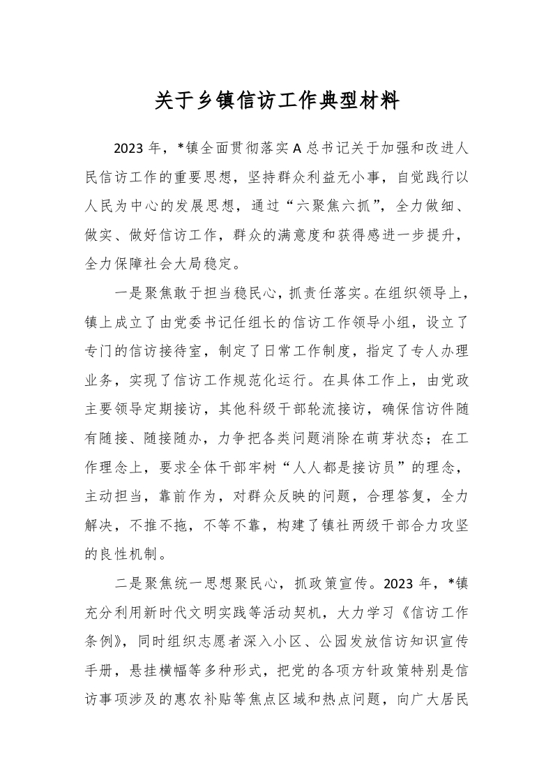/ 关于乡镇信访工作典型材料