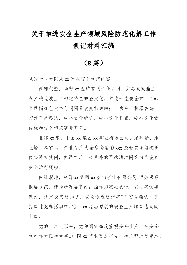 / (8篇)关于推进安全生产领域风险防范化解工作侧记材料汇编