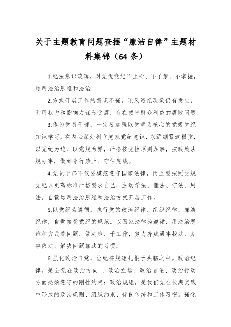 / (65条)关于主题教育问题查摆“廉洁自律”主题材料集锦