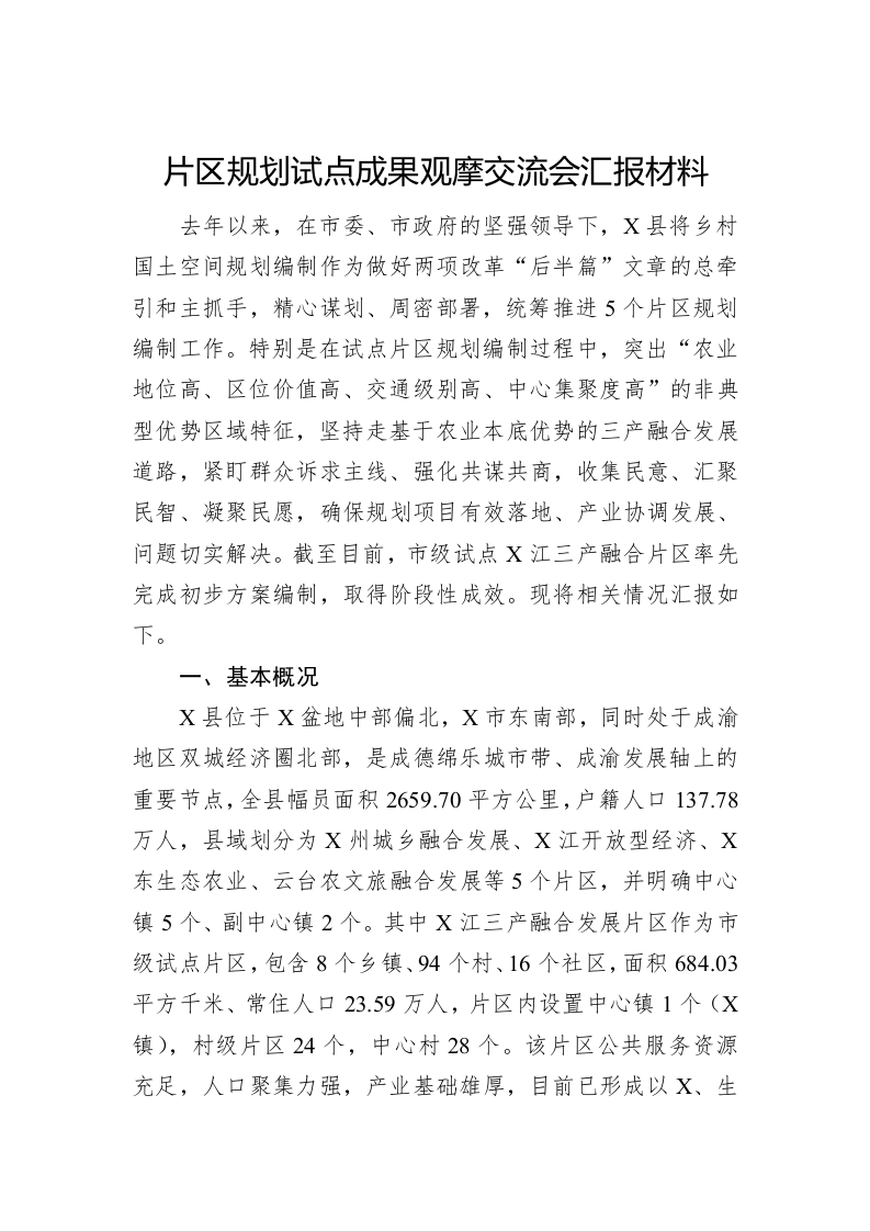 / 片区规划试点成果观摩交流会汇报材料