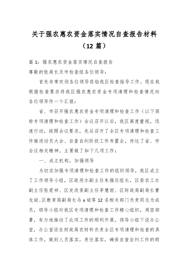 / (12篇)关于强农惠农资金落实情况自查报告材料