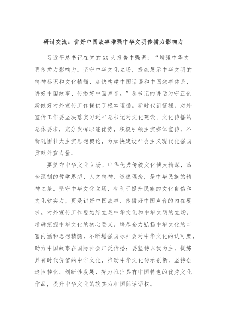 / 研讨交流:讲好中国故事增强中华文明传播力影响力