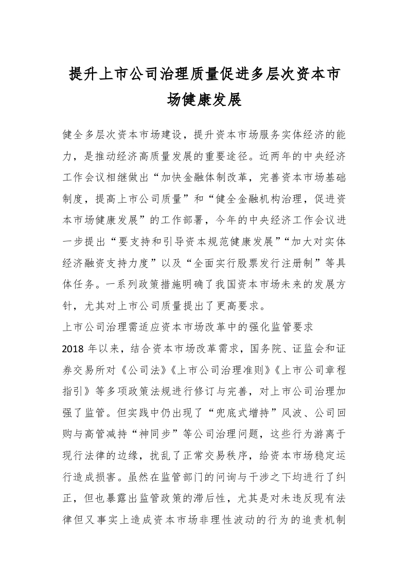 提升上市公司治理质量 促进多层次资本市场健康发展