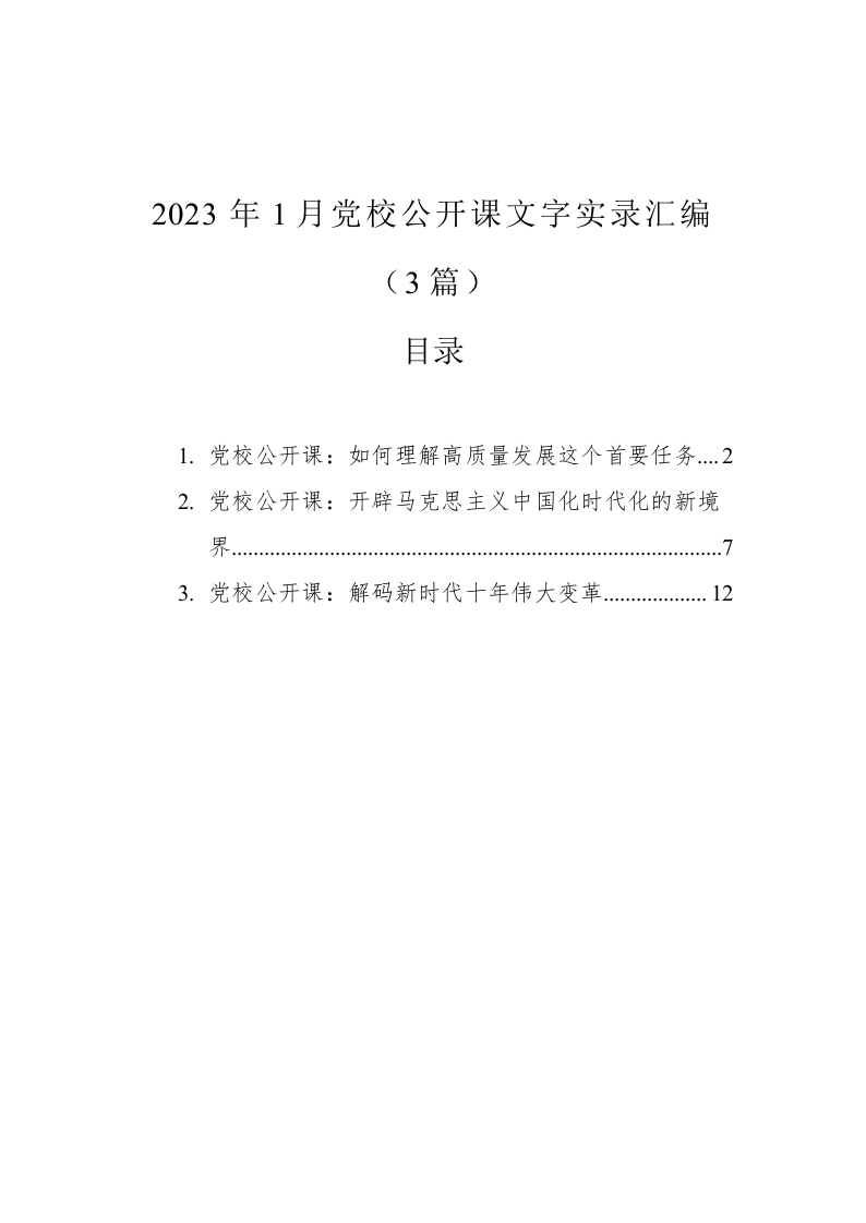 / 2023年1月党校公开课文字实录汇编(3篇)