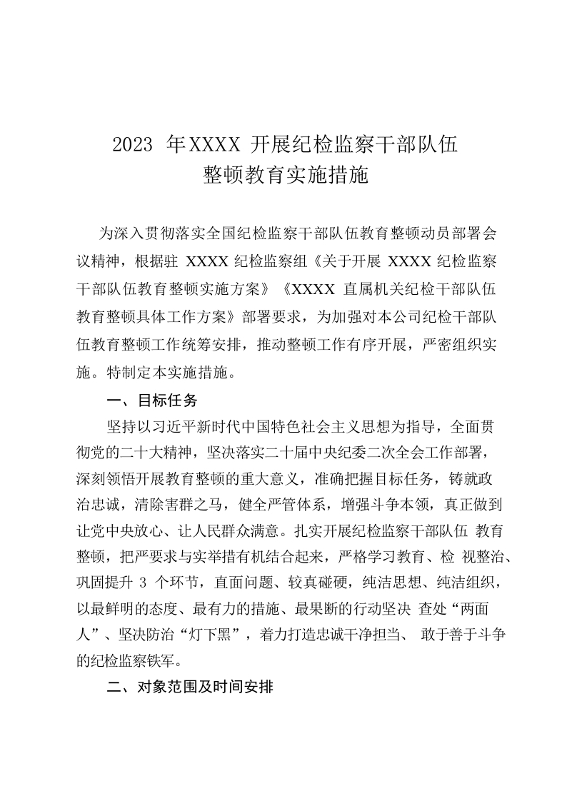/ 2023年XXXX开展纪检监察干部队伍整顿教育实施措施