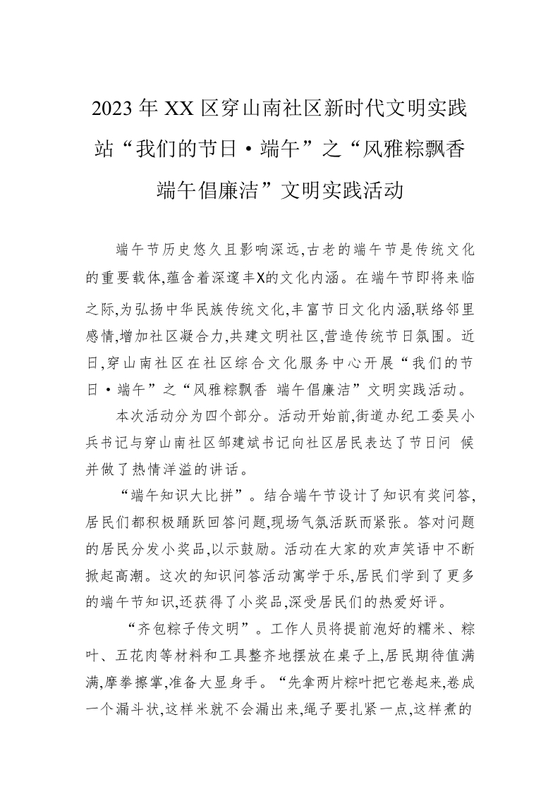 / 2023年XX区穿山南社区新时代文明实践站“我们的节日·端午”之“风雅粽飘香 端午倡廉洁”文明实践活动(20230616)