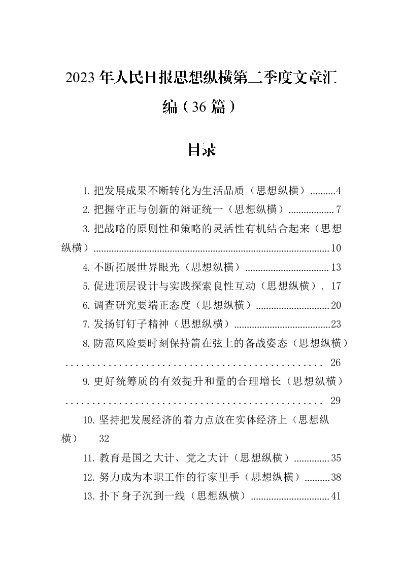 / 2023年人民日报思想纵横第二季度文章汇编(36篇)