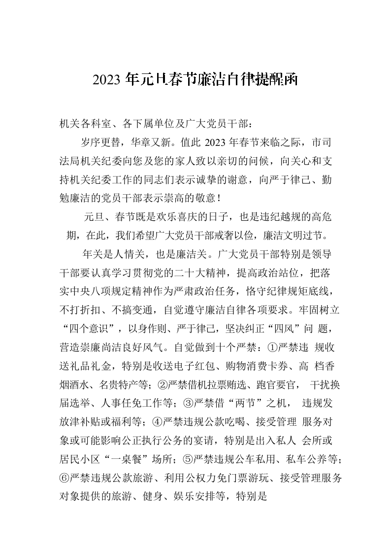 2023年元旦春节廉洁过节提醒函汇编(12篇)