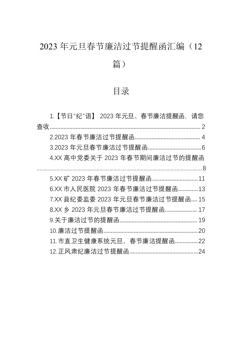 2023年元旦春节廉洁过节提醒函汇编(12篇)
