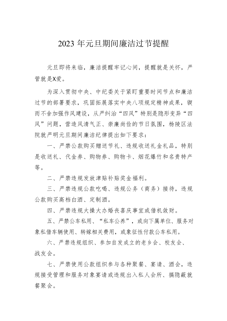 / 2023年元旦期间廉洁过节提醒(20221229)