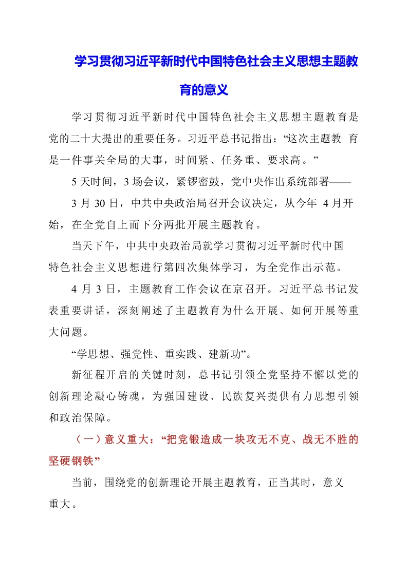 / 2023年学习贯彻习近平新时代中国特色社会主义思想主题教育的意义