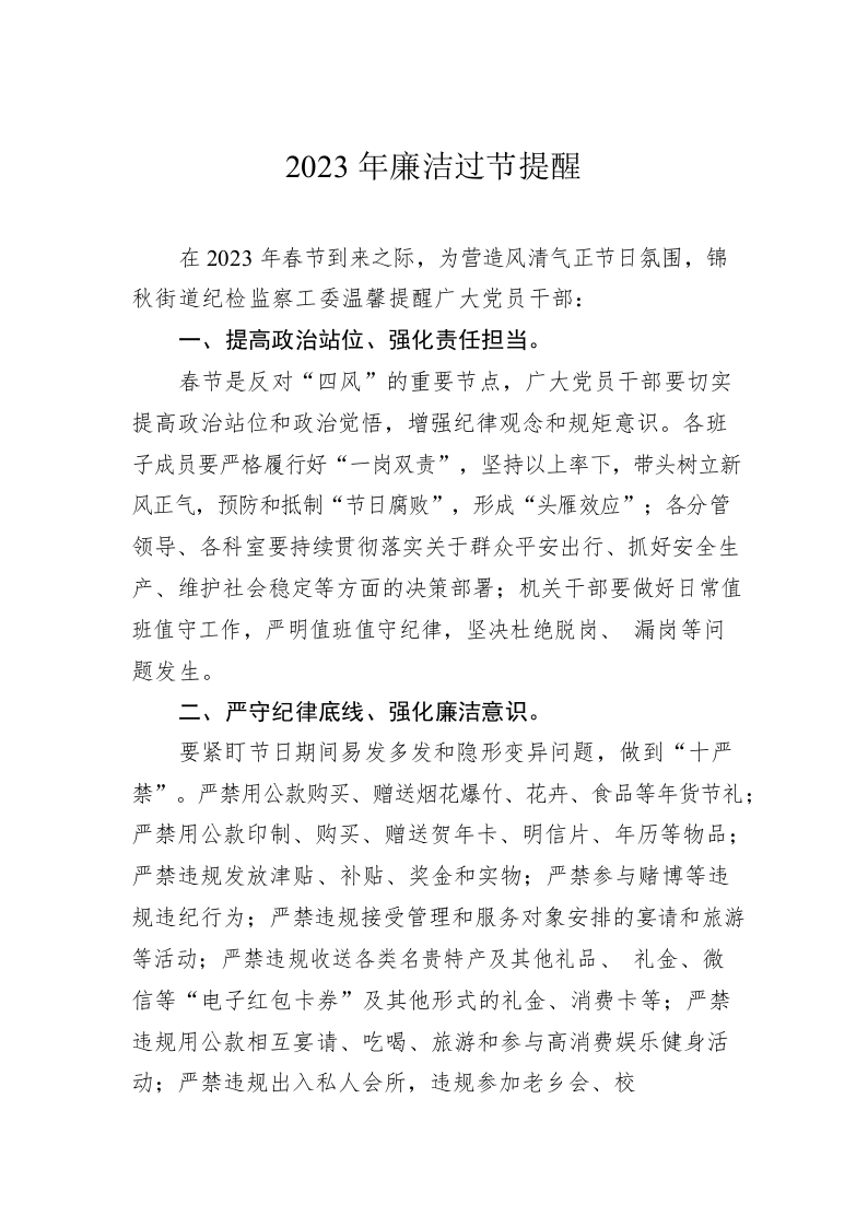 / 2023年廉洁过节提醒(20230112)