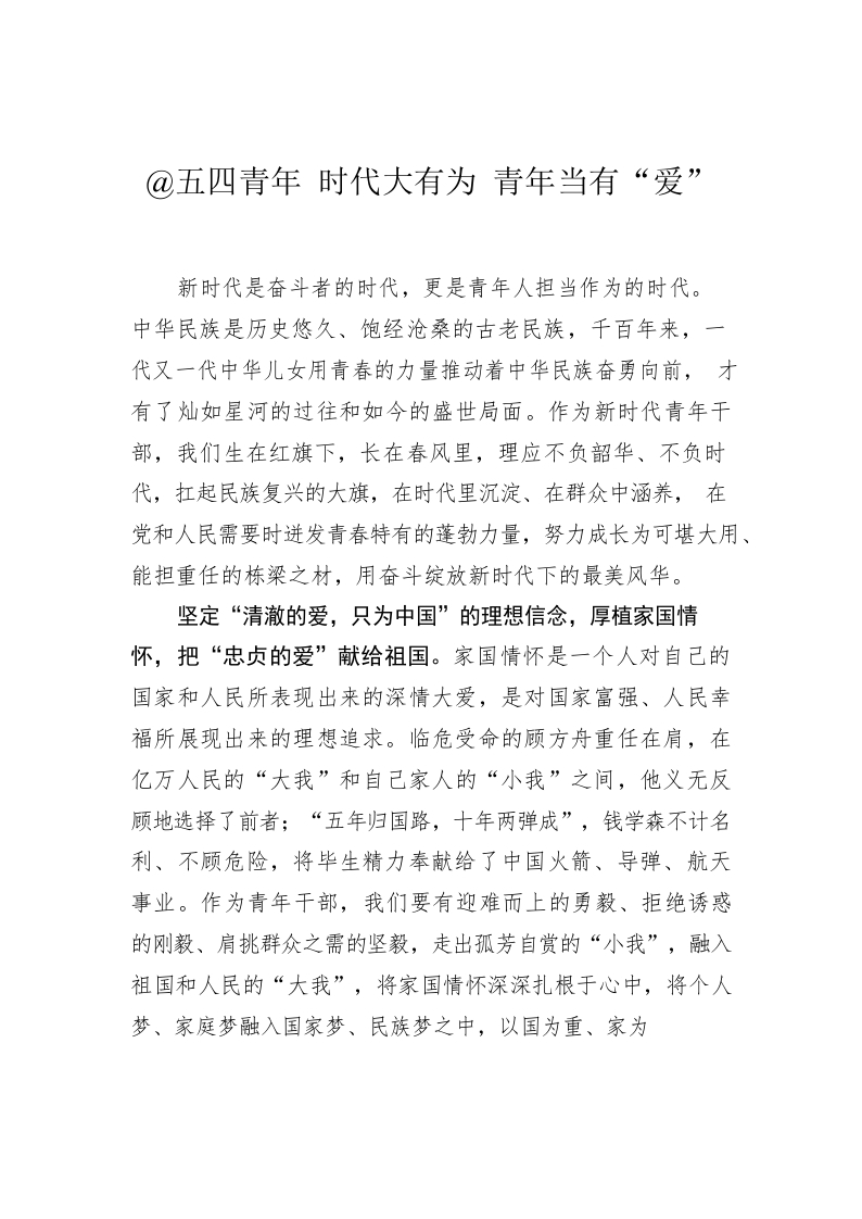 @五四青年 时代大有为 青年当有“爱”