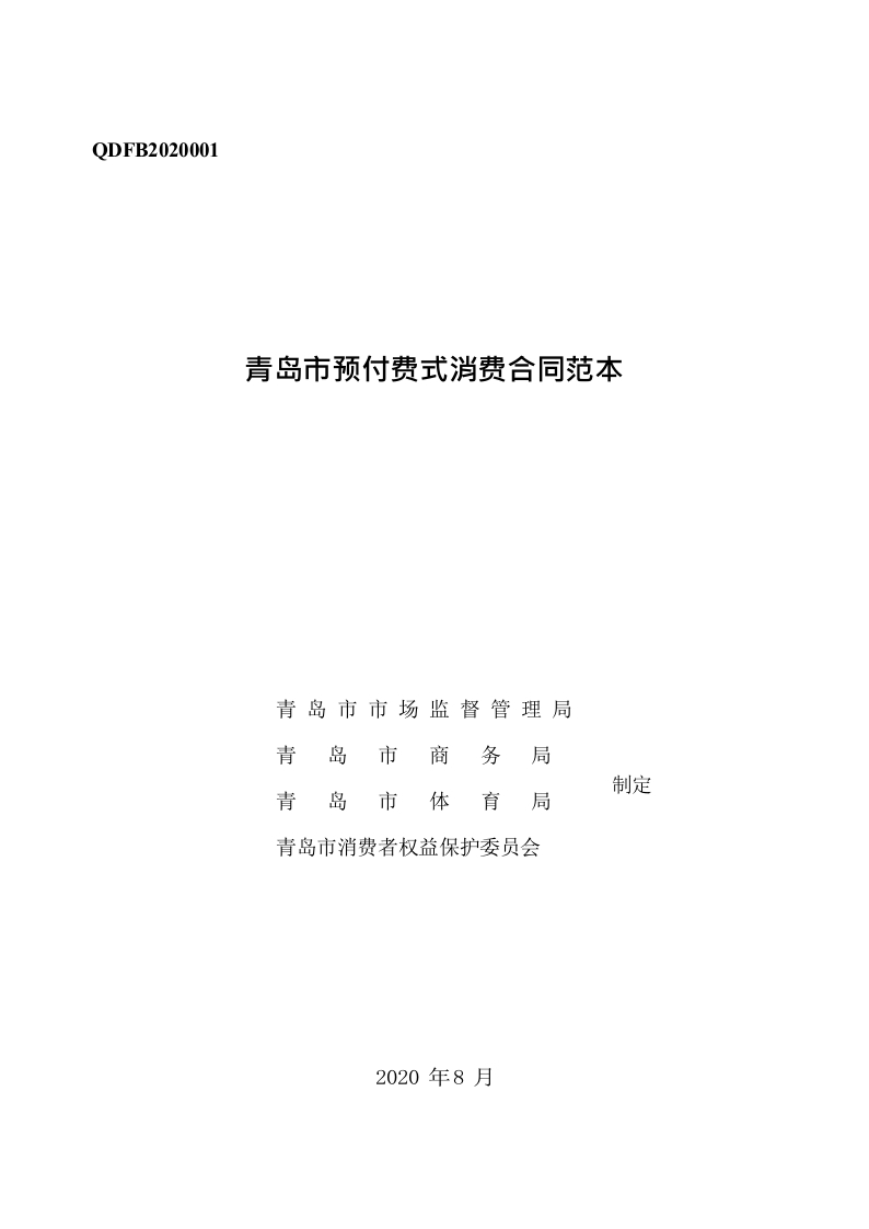 / QDFB2020001 青岛市预付费式消费合同范本