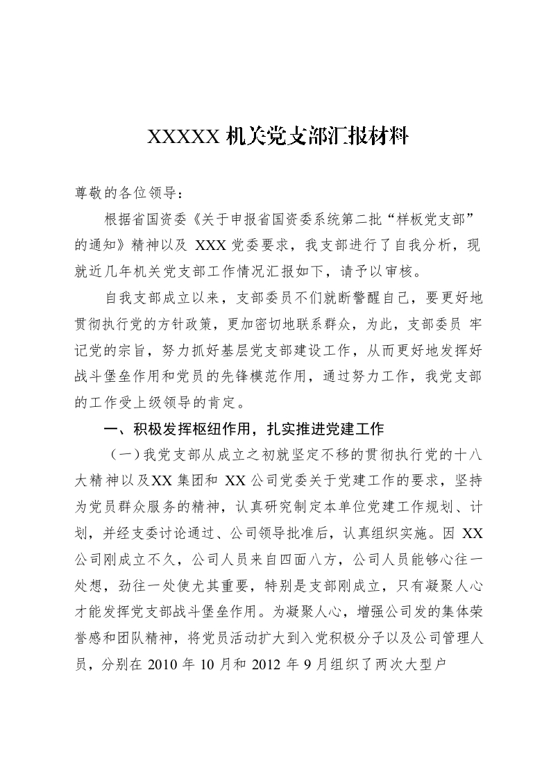 / XXXXX机关党支部汇报材料