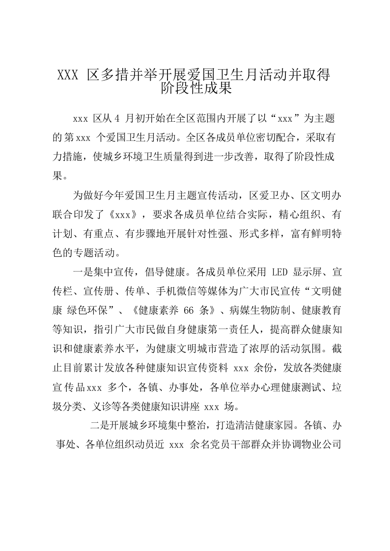 / XXX区多措并举开展爱国卫生月活动并取得阶段性成果