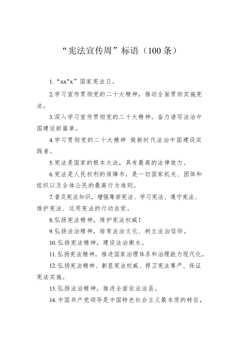 / “宪法宣传周”标语(100条)