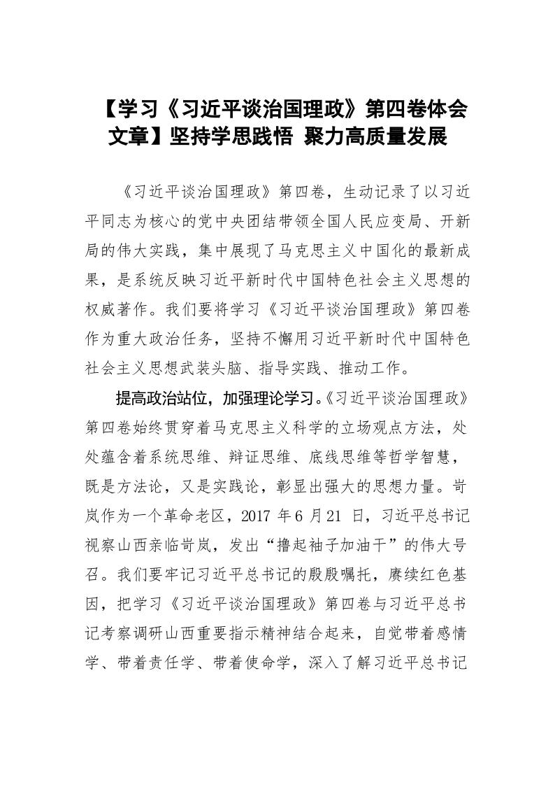 / 【学习《习近平谈治国理政》第四卷体会文章】坚持学思践悟 聚力高质量发展