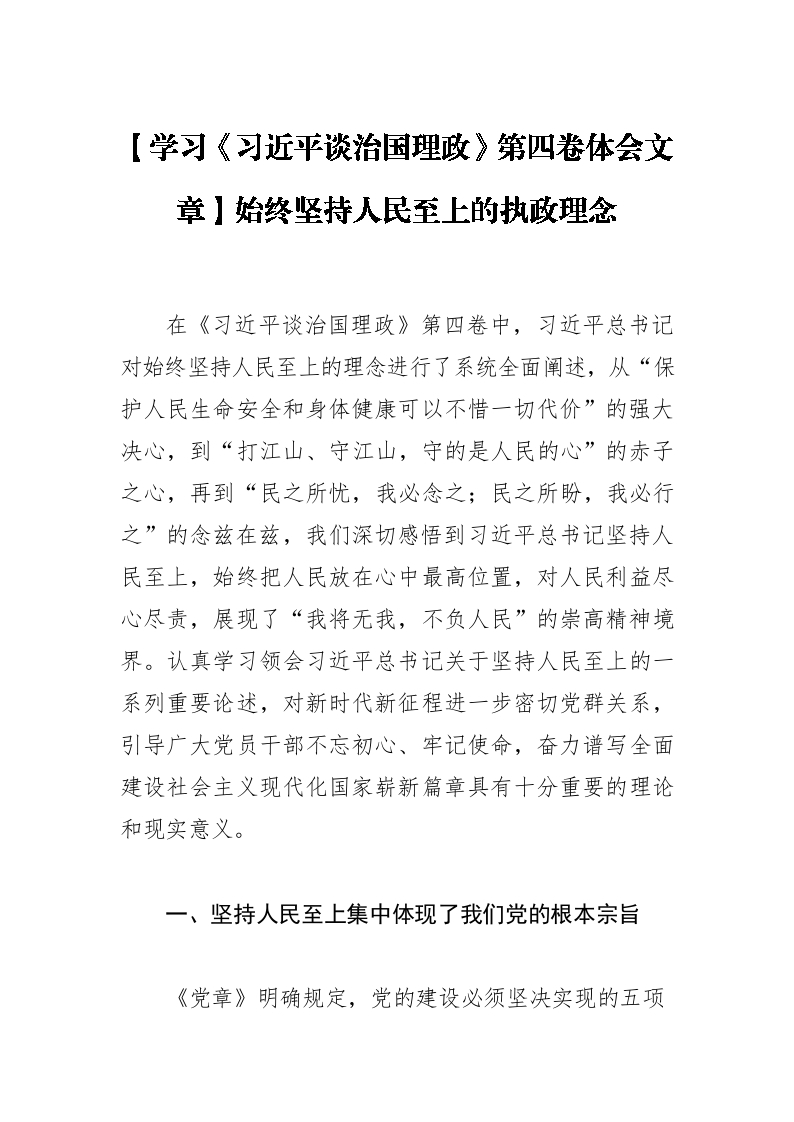 / 【学习《习近平谈治国理政》第四卷体会文章】始终坚持人民至上的执政理念
