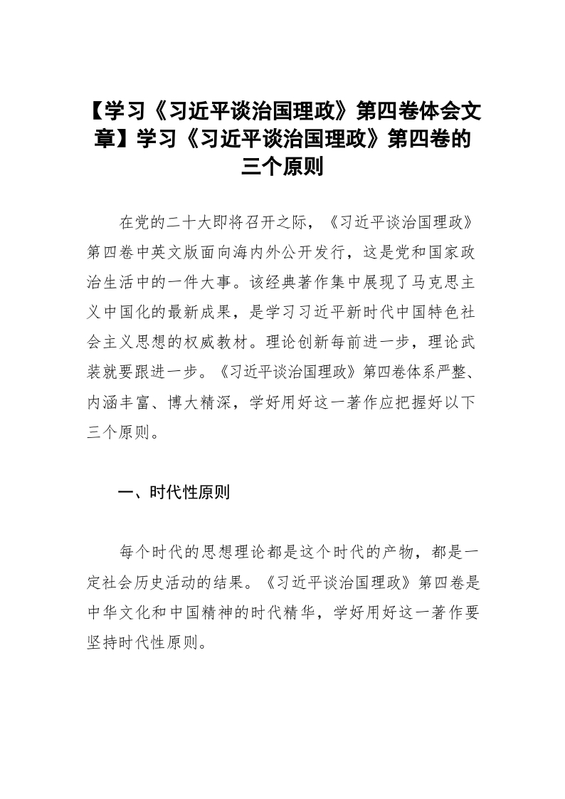 / 【学习《习近平谈治国理政》第四卷体会文章】学习《习近平谈治国理政》第四卷的三个原则