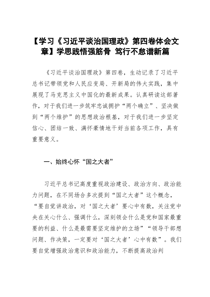 / 【学习《习近平谈治国理政》第四卷体会文章】学思践悟强筋骨 笃行不怠谱新篇