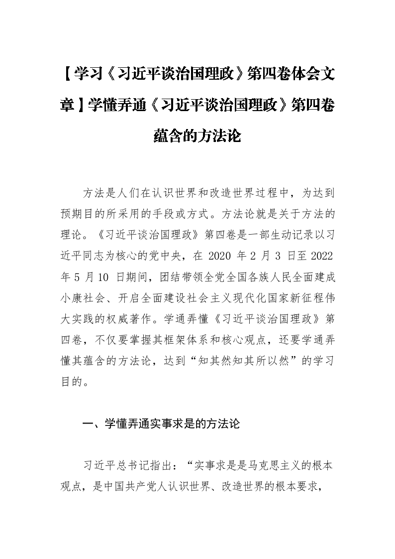 / 【学习《习近平谈治国理政》第四卷体会文章】学懂弄通《习近平谈治国理政》第四卷蕴含的方法论