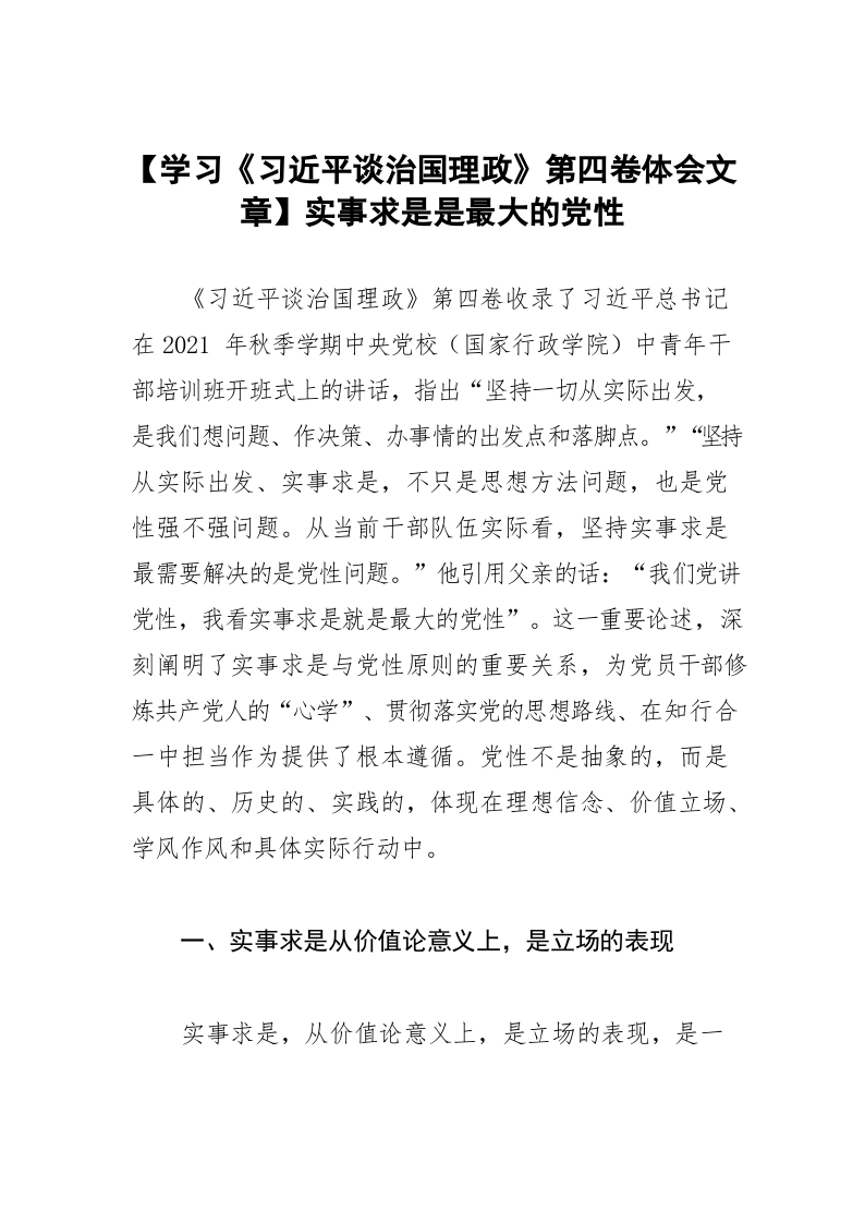 / 【学习《习近平谈治国理政》第四卷体会文章】实事求是是最大的党性